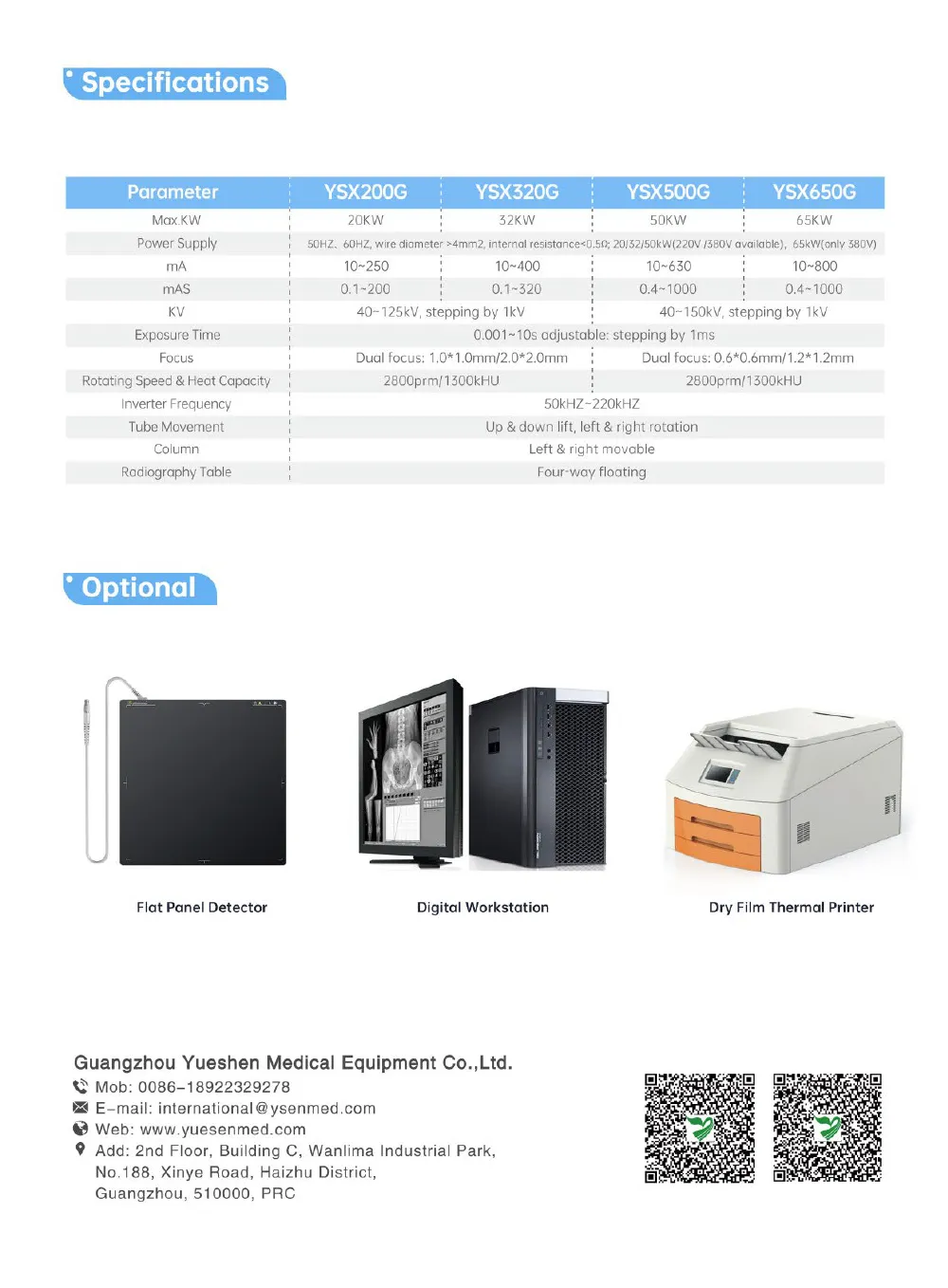 65kW 800mA Medical Digital X ray System YSX650G (YSF65-B3)