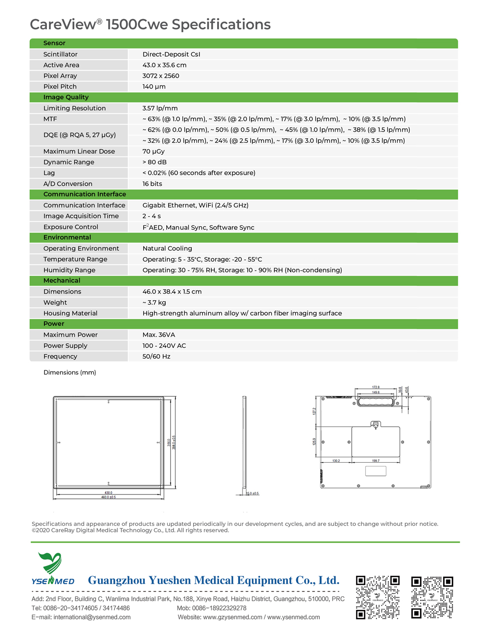 CareRay CareView 1500Cwe 14″ x 17″ Medical X-ray Wireless Flat Panel Detector