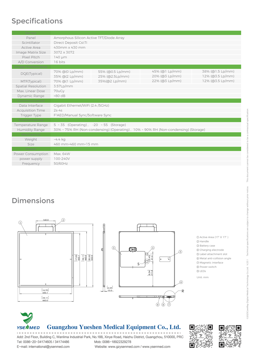 Wireless Superior 14 x 17-inch Cassette-size Flat Panel Detector Designed for Digital Radiography YSFPD-M1417V