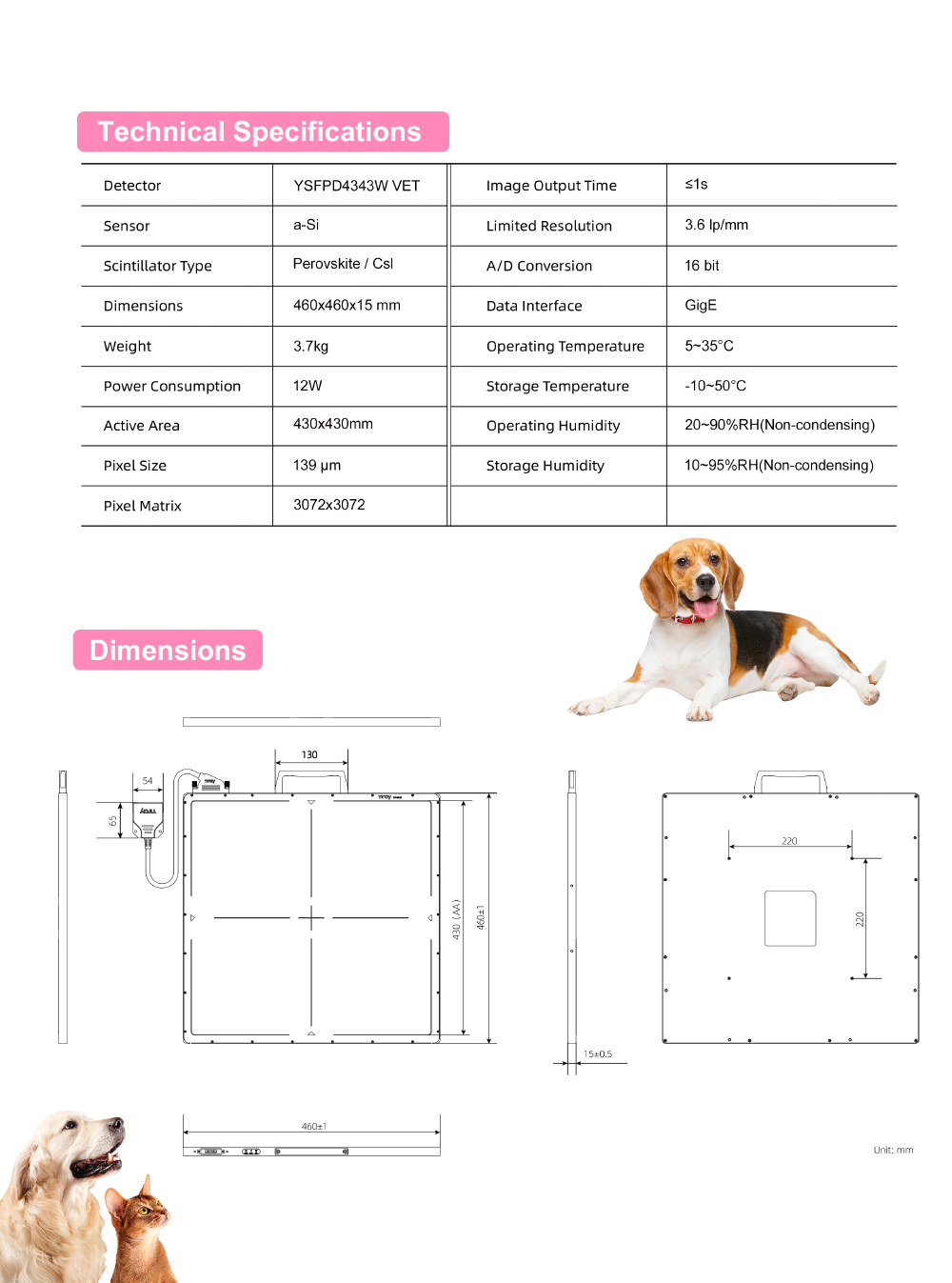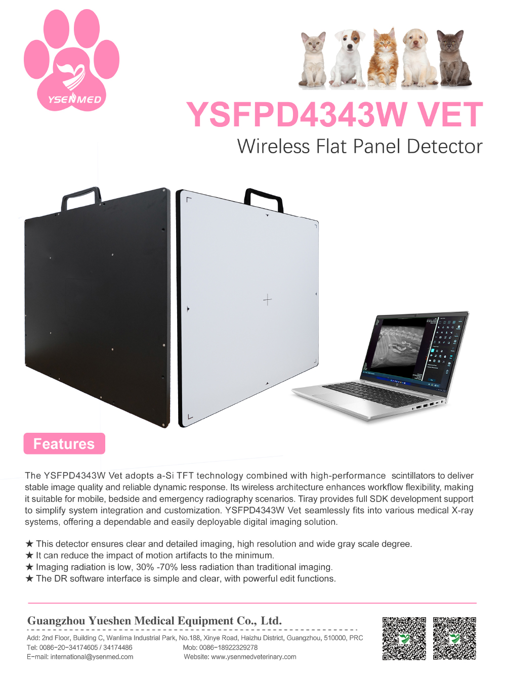 Беспроводной плоскопанельный детектор для ветеринарной радиологии DR YSFPD4343W VET
